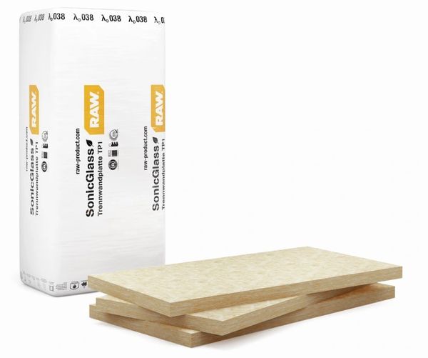RAW Trennwandplatte SonicGlas ist eine unkaschierte Dämmplatte aus Mineralwolle für die Wärme- und Schalldämmung von Bauteilen.