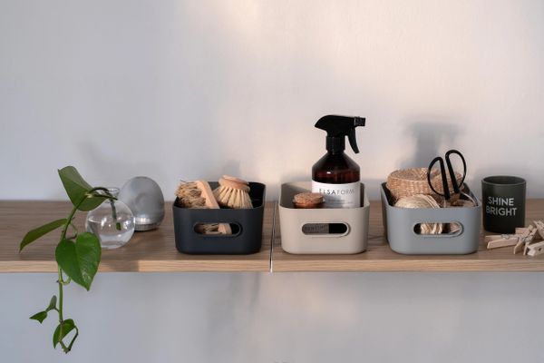 SmartStore™ Comfort hilft dabei, alltägliche Haushaltsgegenstände ordentlich zu organisieren. Die schönen Behälter sind in trendigen, erdigen Farben erhältlich und eignen sich sowohl für Schränke und Schubladen als auch für Regale und Arbeitsflächen. SmartStore™ Comfort ist perfekt für kleine Toilettenartikel und Badezimmerutensilien, Waschraumzubehör, kleine Aufbewahrungslösungen im Flur und Eingangsbereich sowie für den Gartenschuppen oder die Garage. Hergestellt in Finnland aus recyceltem Kunststoffabfall, der von Verbrauchern gesammelt wurde. 10 Jahre Garantie.
