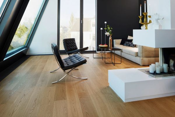 All three natural colour shades of Formpark Rombico are available with a naturally oiled finish. The brushed surface adds character and depth to the floor, enhancing the interplay of light. The planks of this 2-layer parquet are produced with a calm wood grain and without bevels, creating a smooth, continuous appearance.