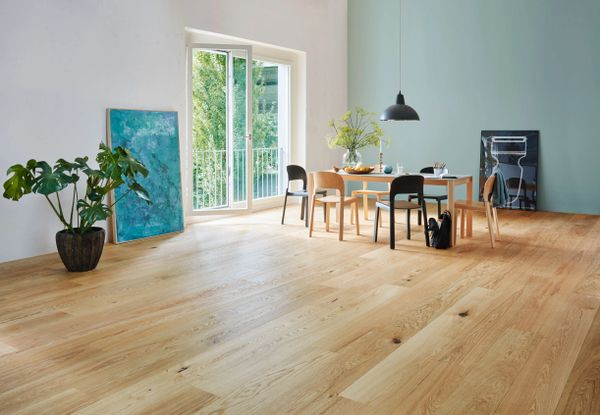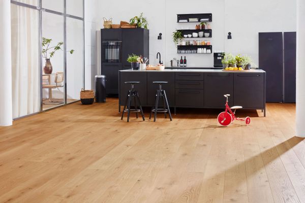The generous Casapark 1-strip-planks in oak emphasise the individual character of every room with their distinctive variety.