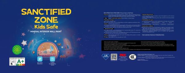 Sanctified Zone KidsSafe Multi-effect Mineral Interior Wall Paint is a coating primarily composed of minerals, offering excellent performance in stain resistance and washability. Its low VOC content complies with the national standards for interior wall coatings used in children's room decoration, making it suitable for various home wall decoration needs.