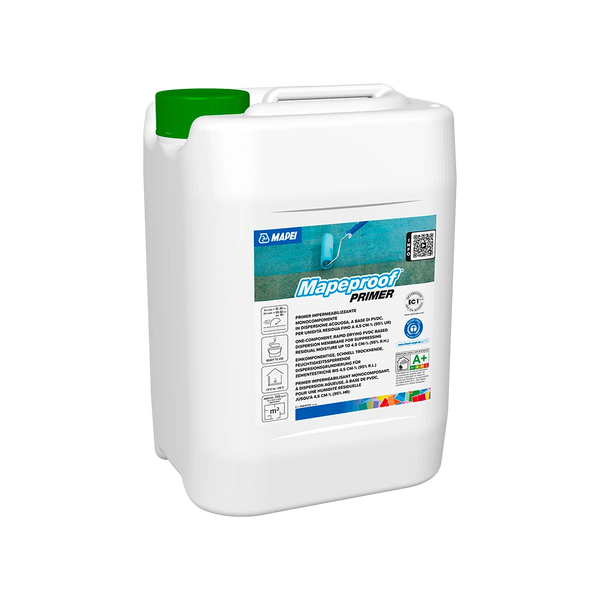 Number of recommended coats apply in a minimum of two coats. With particularly low absorbent or finished screeds with a tight surface, first apply a dilute coat of MAPEPROOF PRIMER (1 : 1 with water), allow to dry (approx. 20 mins) and proceed with the others 2 coats.
